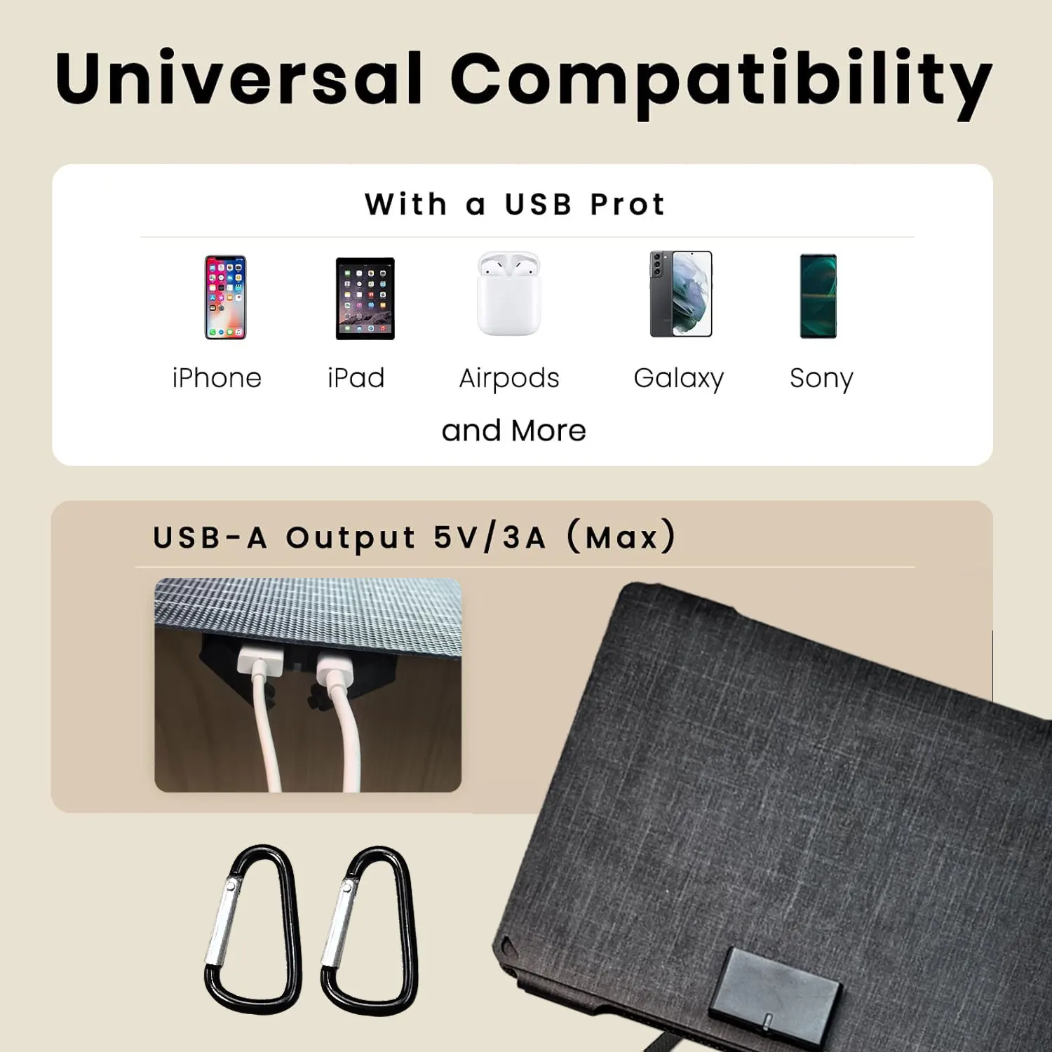 Wide compatibility and easy to use: the 35W solar charger, which is backpack-friendly, features USB-PD ports compatible with smartphones, tablets, cameras, drone chargers, NS, and more. In addition, when unfolded, use the two included S-Biners to set it up anywhere effortlessly, be it on the ground, attached to your tent, or fixed to your backpack.